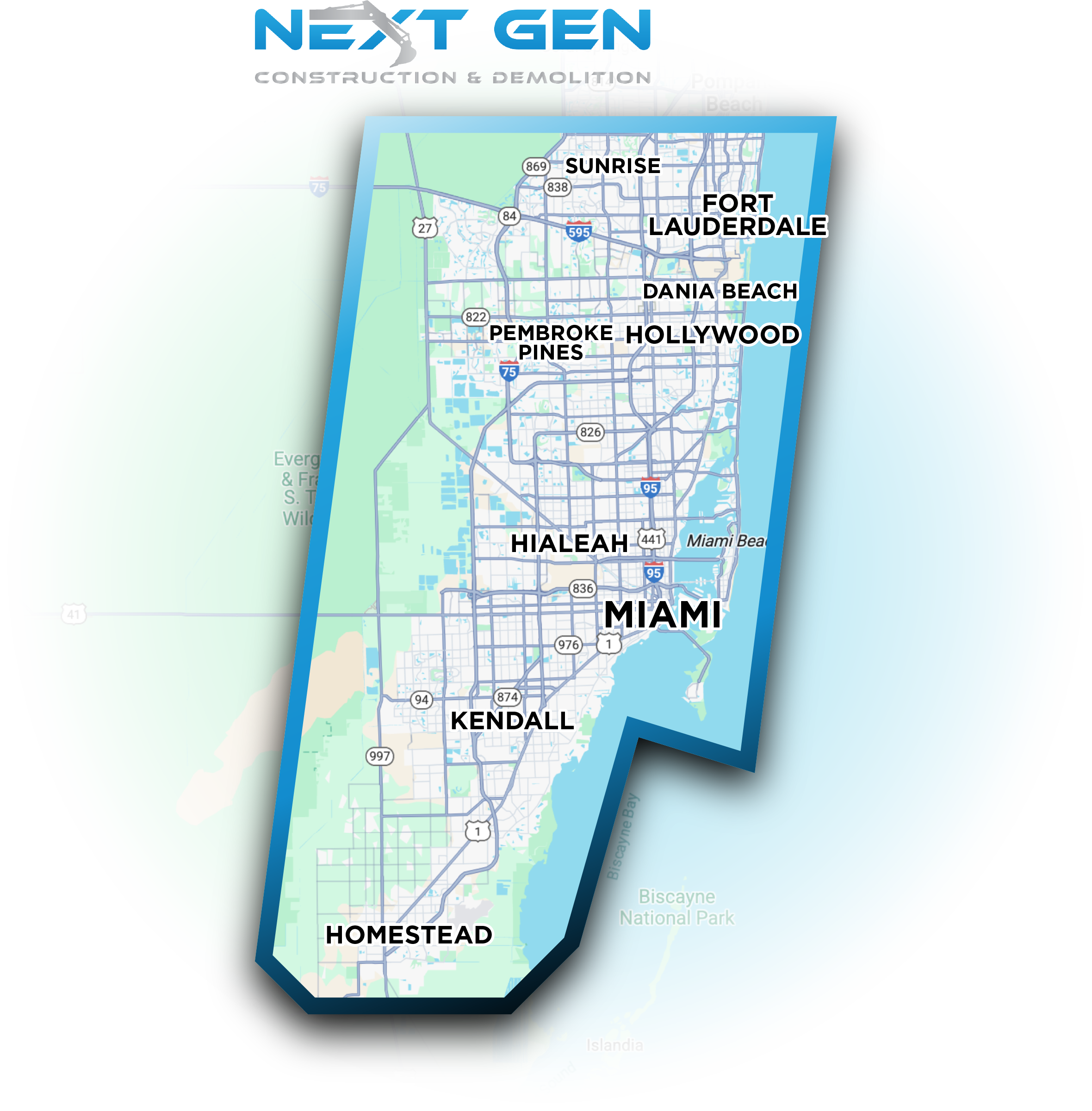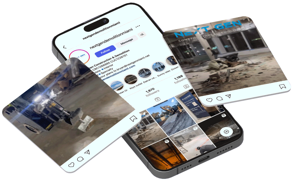 Next Gen Miami is a father-and-son team with 20+ years of experience handling high-stakes demolition projects across Florida. Our licensed crew delivers fast, safe results with the precision GCs need to stay on schedule and on budget. We’re more than a subcontractor—we’re a trusted partner from estimate to cleanup.