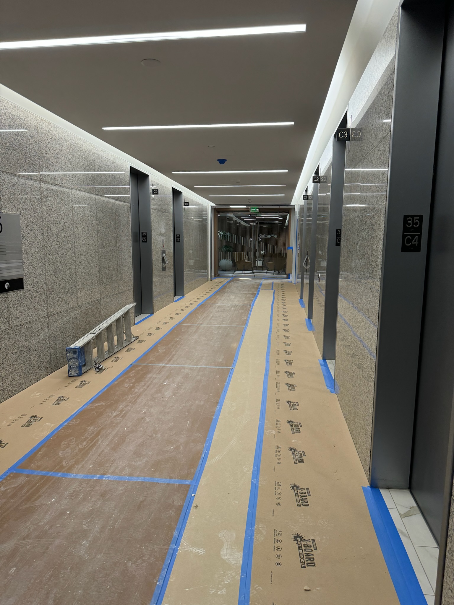 The work area is secured by setting up barriers, dust containment systems, and safety signage. Floors, walls, and any areas not being demolished are protected with coverings to prevent damage.