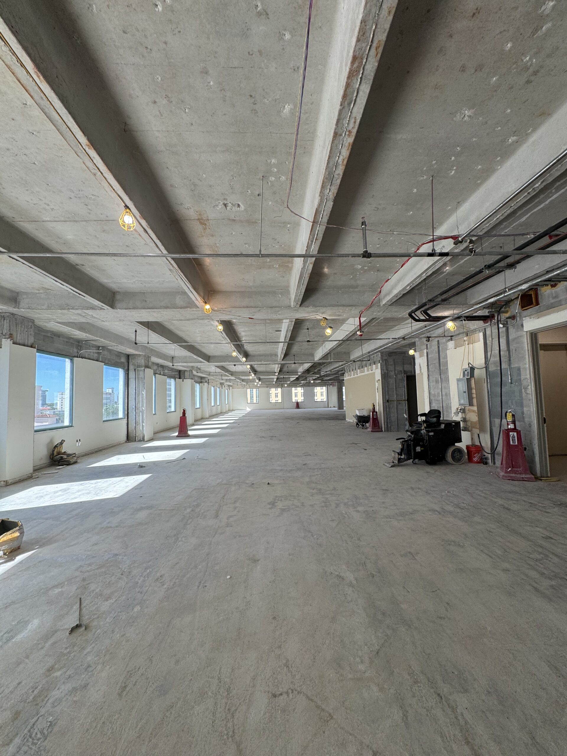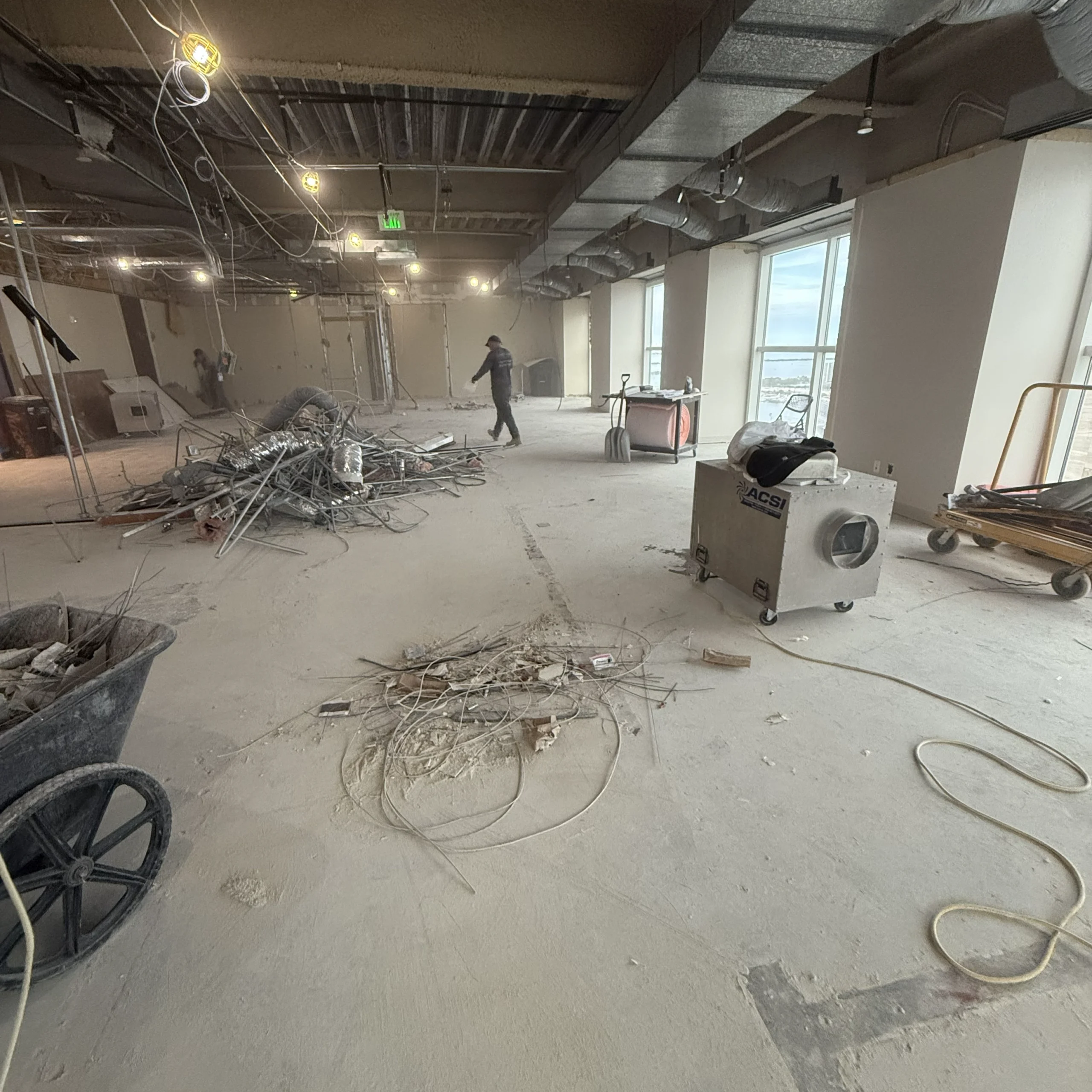 This involves removing non-structural elements like furniture, fixtures, cabinets, partitions, drywall, carpets, and flooring. This step also includes removing any doors, windows, or ceiling tiles.