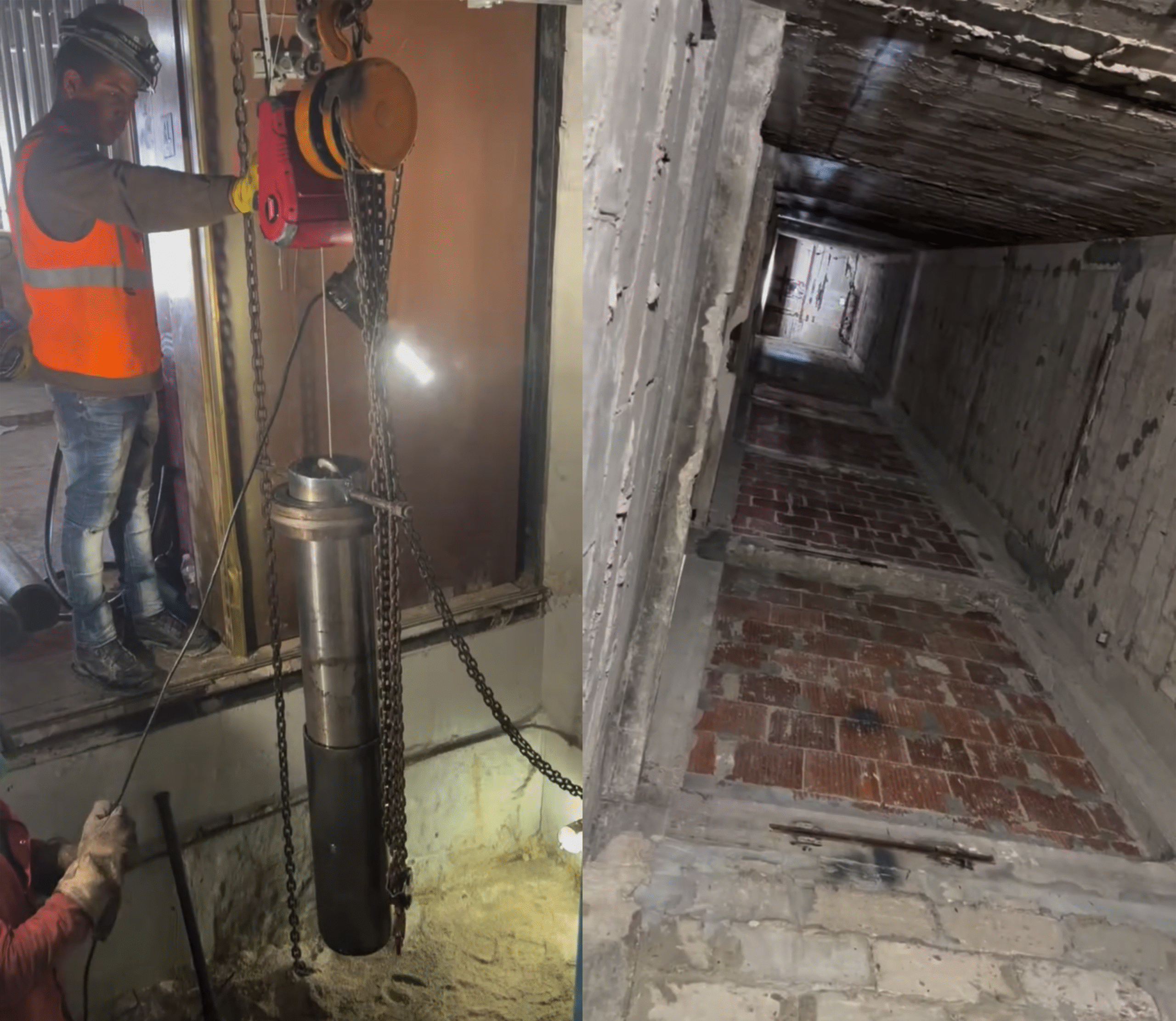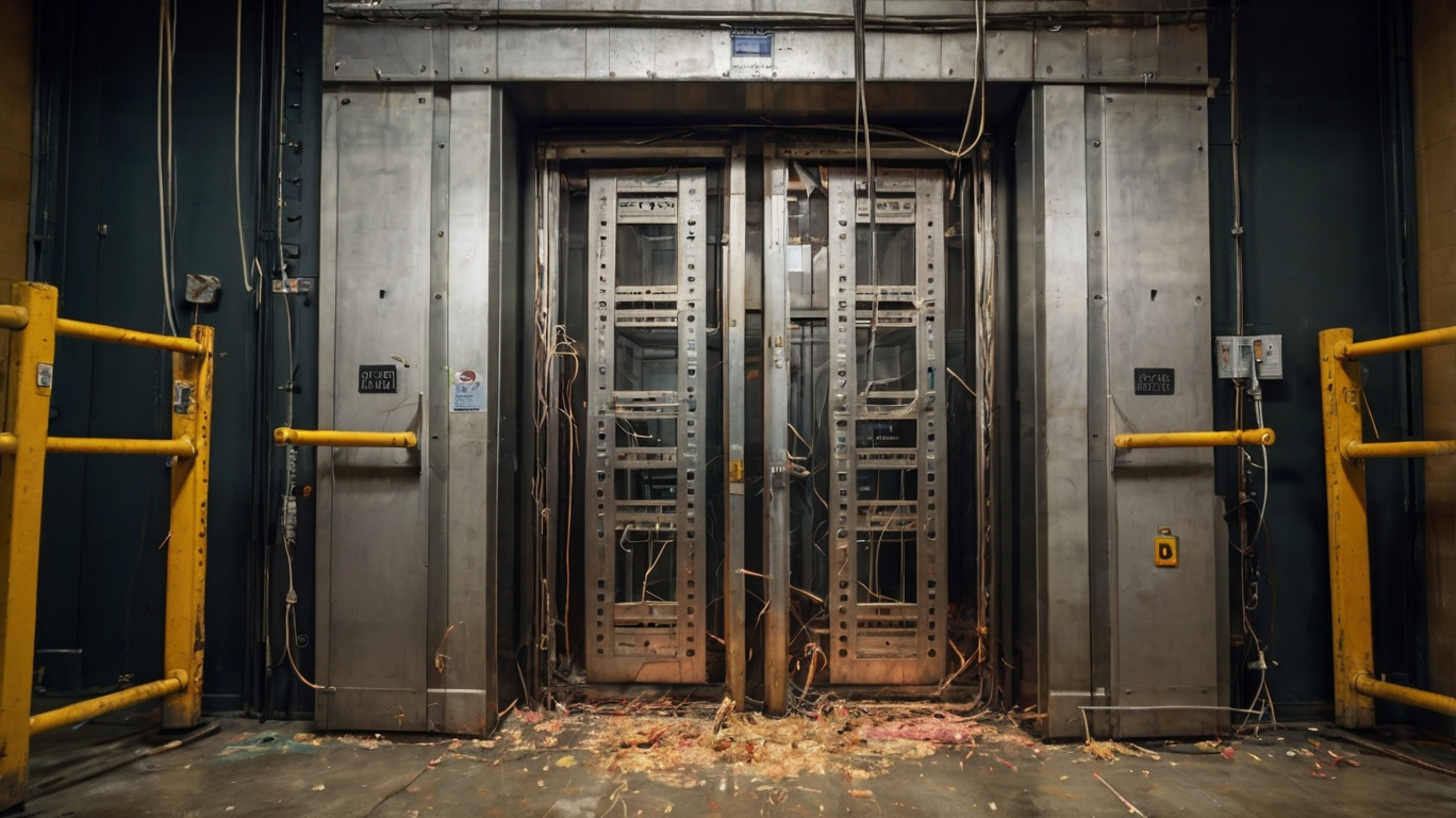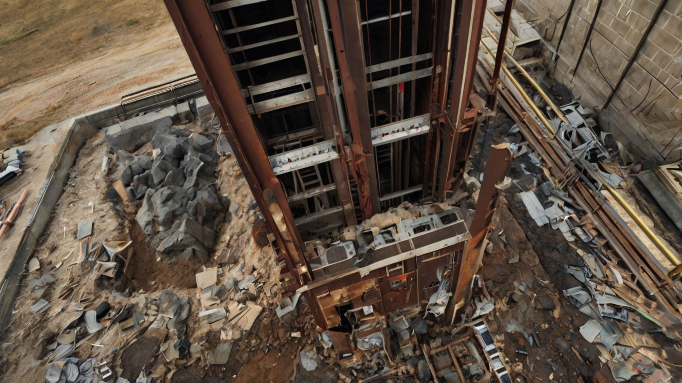 Guide rails, support brackets, and structural components inside the shaft are removed. If the shaft itself is being demolished, additional structural reinforcements may be required before removal.